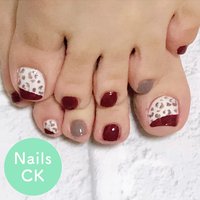 フットジェル フットネイル ボルドー グレージュ ワンカラー 冬ネイル ビジュー 横須賀ネイル シャルール フットネイル